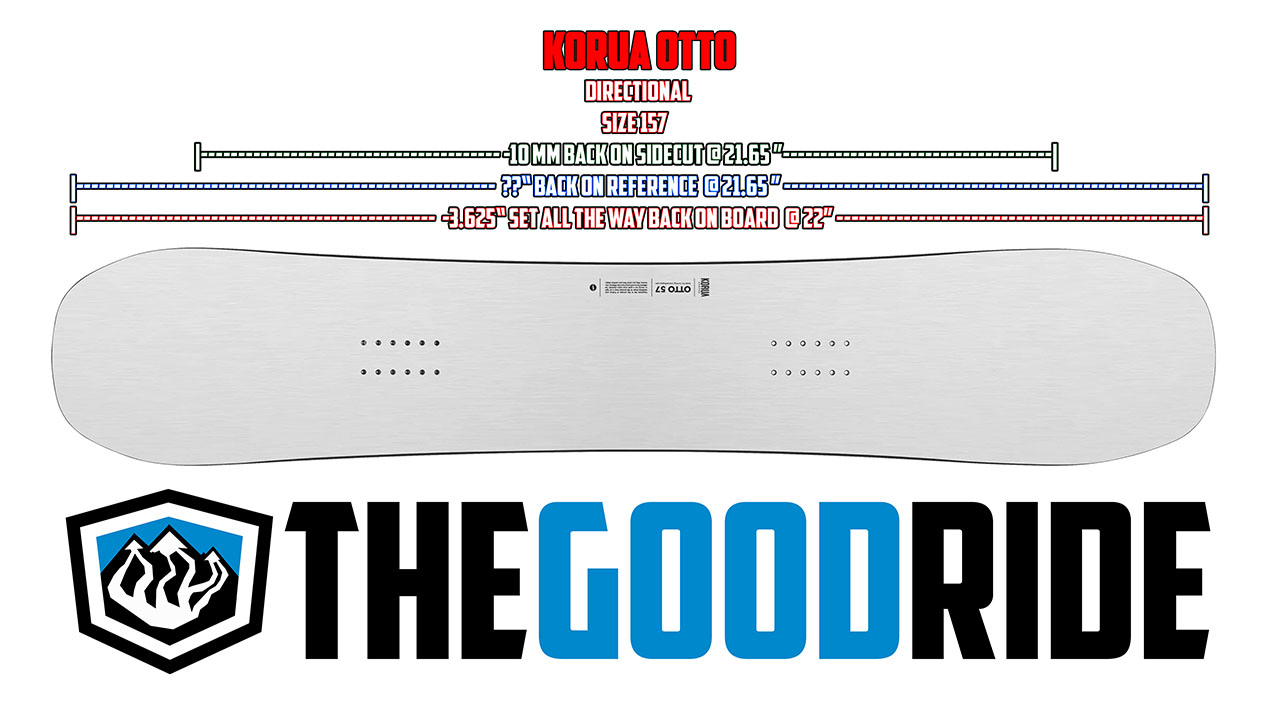 Setback: – Centered On Sidecut @ 21”  /  -2.75” @ 22” Set Back