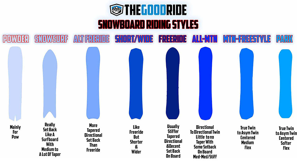 This is the closest to truly being a one-board quiver and most can say yes to just about anything you want to do. All Mountain Boards sit between an Mtn Freestyle and a Freeride board. You can ride these centered and switch on groomers, but unlike Mtn Freestyle Snowboards, they have a little setback on the board to give you a taste of what it’s like to be on a freeride board. If you want to learn more about the different riding styles, check The Good Ride Riding Styles Explained.
