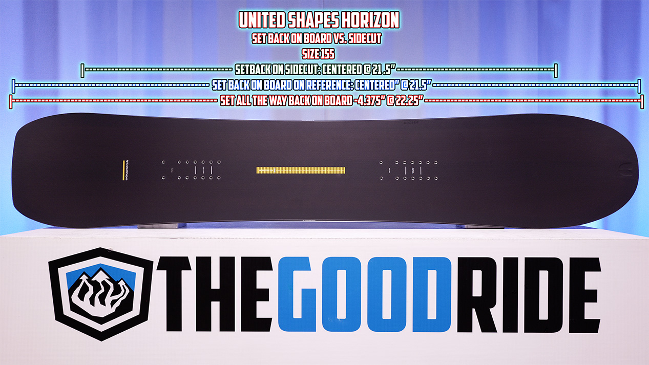 Setback: -1” @ 22” on sidecut / -2.25” @ 22.75” back on board
