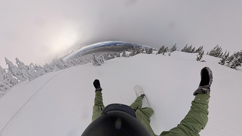The pin tail allows for a very unique off-the-tail feel when carving, and you can lay some pretty tight radius trenches with this thing. It’s not the best in uneven snow. The extra-long nose can get chattery pretty easily. But that’s also to be expected, which is why this is a perfect conditions-only board for me.