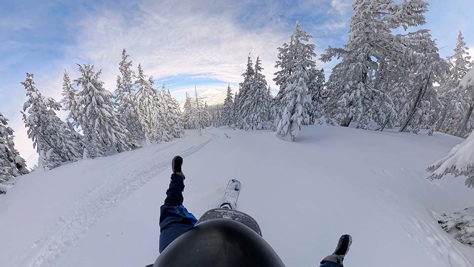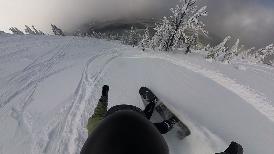• Nose Up Surfy Pow Turns
