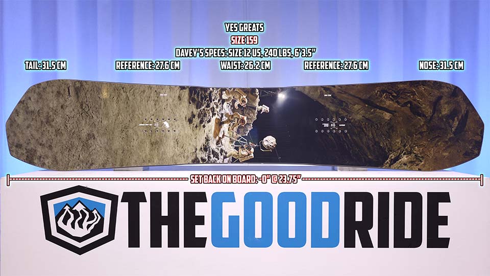 The asymmetrical ride of the YES Greats feels like pure magic when you carve this board. The Greats has an increase in stiffness and camber for 2026, which now more closely matches its flex rating.  This makes this board ride even better, especially for bigger riders like myself, who are pushing the weight limits.