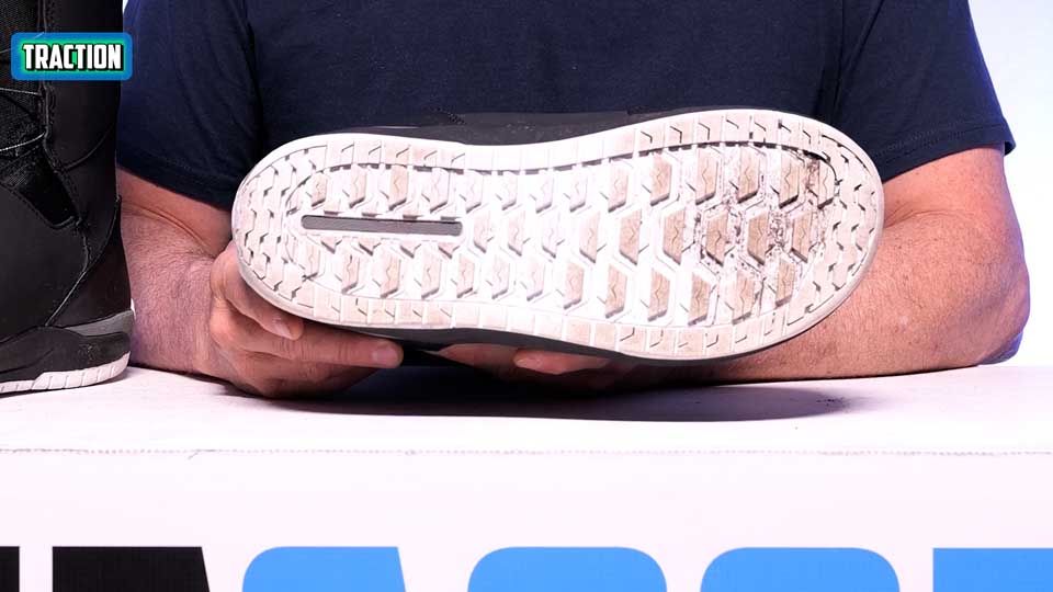 The Ride Lasso traction is good, though. It’s maybe not the best I’ve ever tried, but I never felt uncomfortable in the lift line. And I love an all-rubber sole like this.