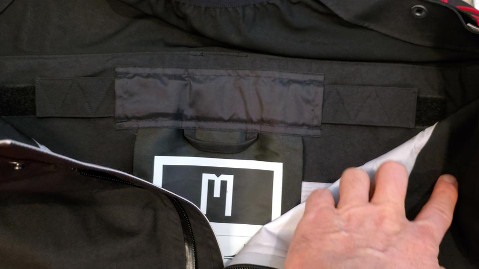 You have 3 buttons that hold the fixed pow skirt of the Skyline Fuse 3L Jacket in place so it doesn’t rise up on you.
