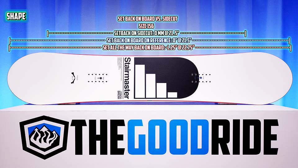 When it comes to shape, this is a true twin with the centered stance and no option for setback on board. So you just set this up centered. Keep it there.