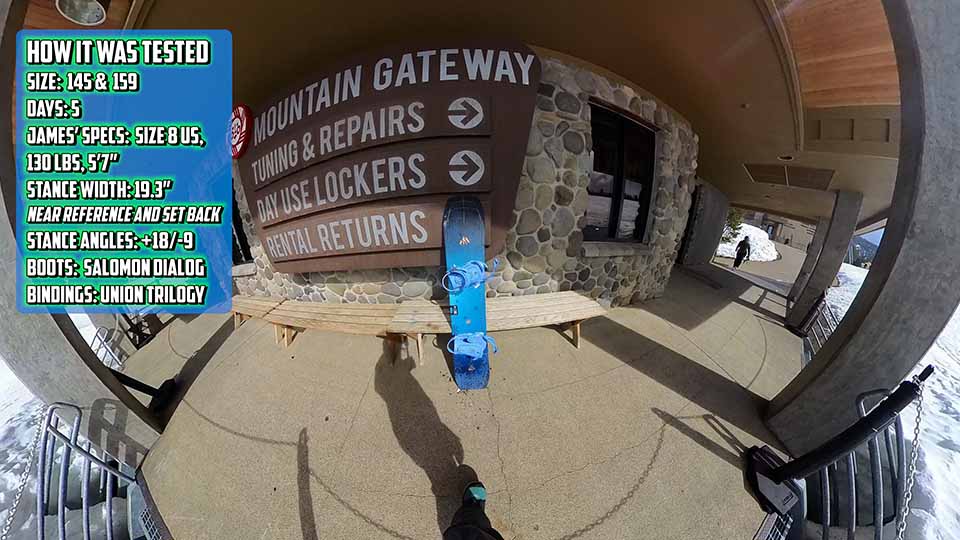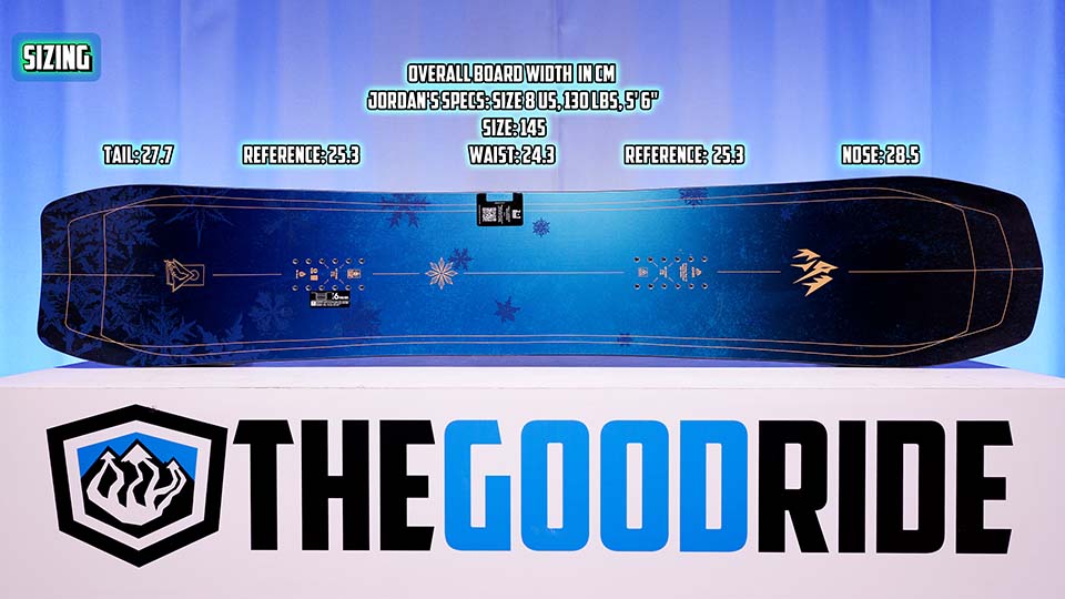 So I was able to get on two different sizes of this board. I was able to get on the 145 here in my home Mount Bachelor and the 148 at Mission Ridge. Of the two, my preference was for the larger size as it felt more stable in more variable conditions. The board is available in a 145, a 148, and a larger size of a 151. The waist width is 24.2 for the 145 and 24.5 for the 148.