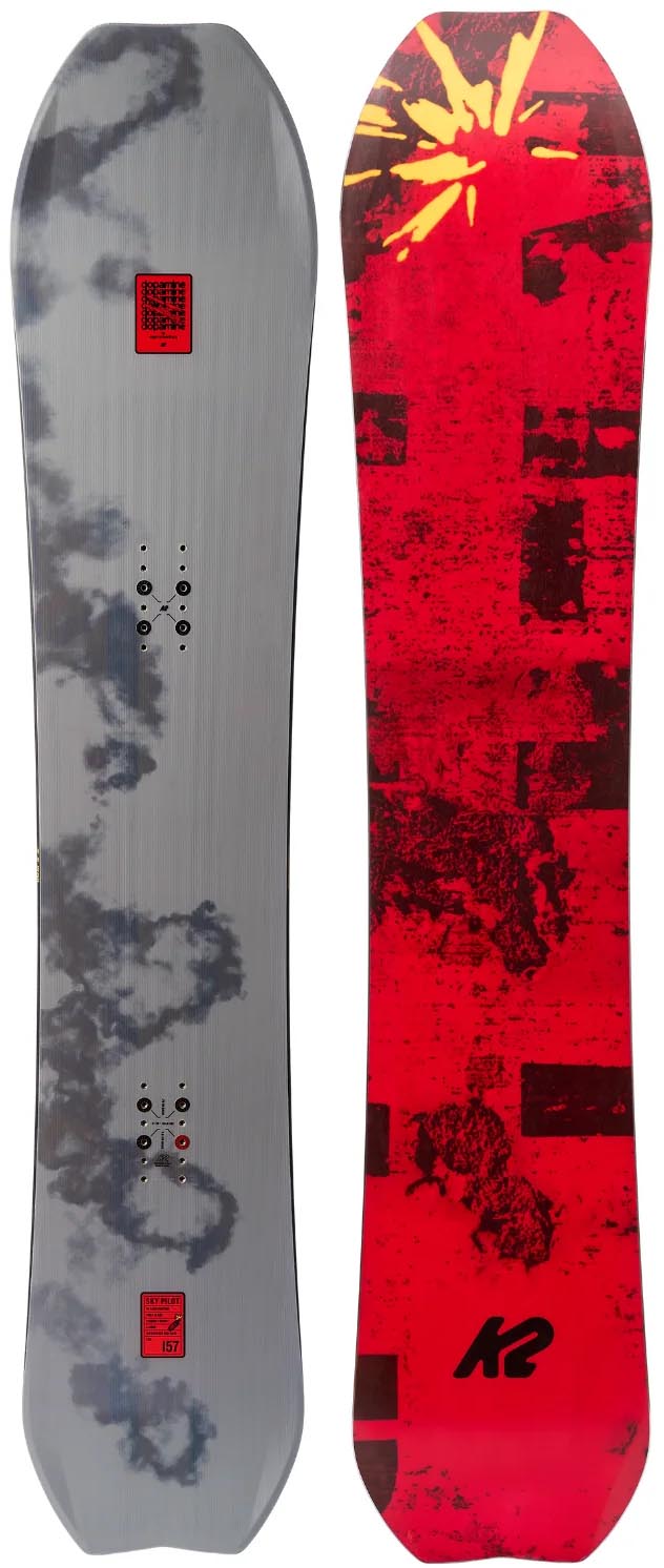 The K2 Sky Pilot. A new board for 2026 that seems to be replacing the instrument, but with many new design elements like lifted sides in the nose/tail. Other than a slower base and middle ground pop, it's a pretty fun/versatile freeride board for those who love a damp, chatter-resistant ride.