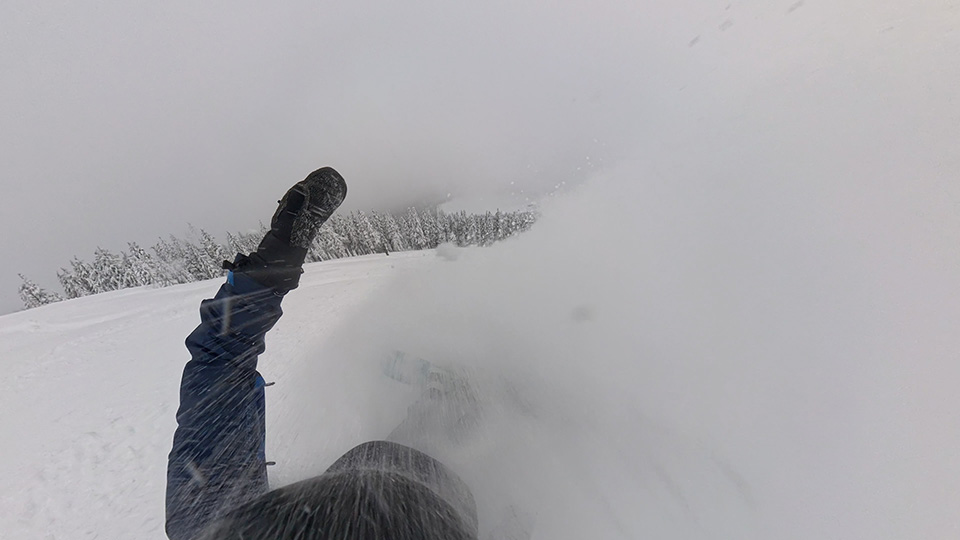 The edge hold on the Lib Tech Orca ll is exceptional. It has a very pronounced magnetraction coming across, but it doesn’t grab and pull you down like magnetraction in the past has from Lib Tech. This releases in softer snow and it’s not too grabby, but it does grip on hard snow. You have to keep it engaged on edge in order to keep it tracking well.