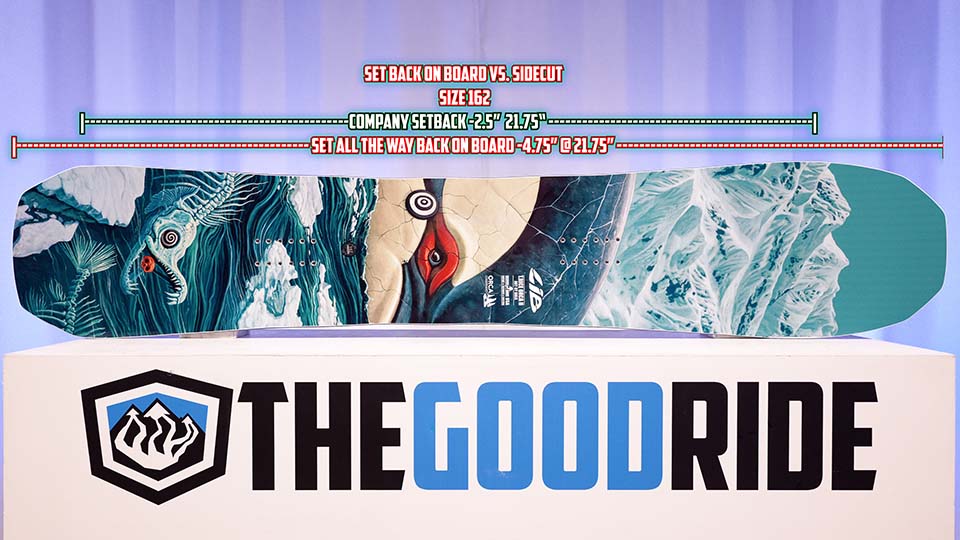 For the shape, this is a tapered, directional, short, wide board. It has 11 mill taper and you do feel that when you get it on edge. It also rides pretty set back but not super set back.
