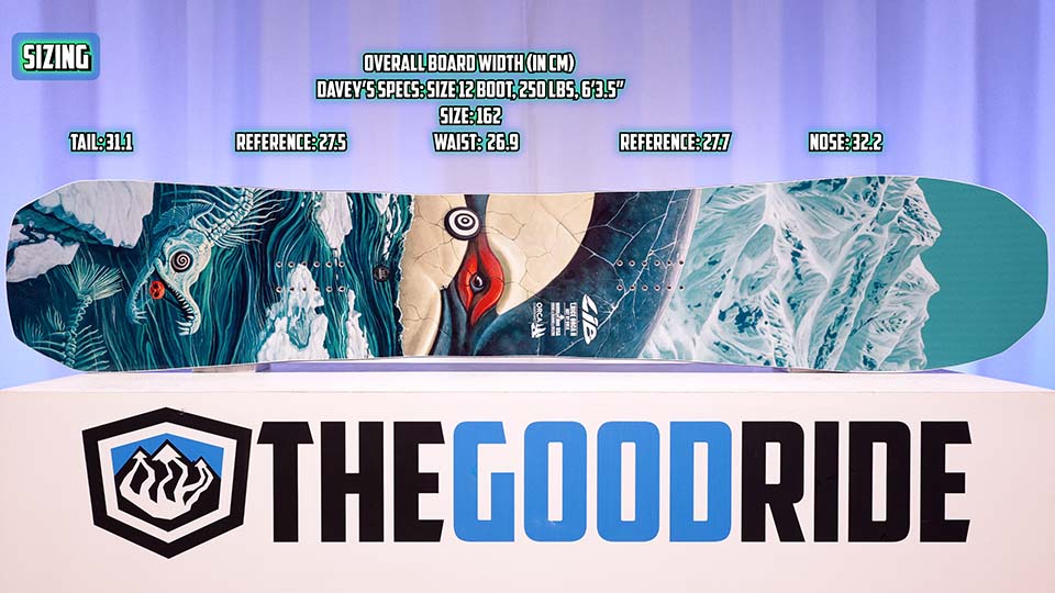 This is a wide board, definitely for size ten and upper riders across the sizing spectrum, even all the way down to the 153. The board is very boot size and weight dependent. If you’re a lighter rider with a bigger boot, we would recommend going down a little bit in sizing. If you’re a heavier rider with a bigger boot, you can ride this more true to size even though it is a short ride.