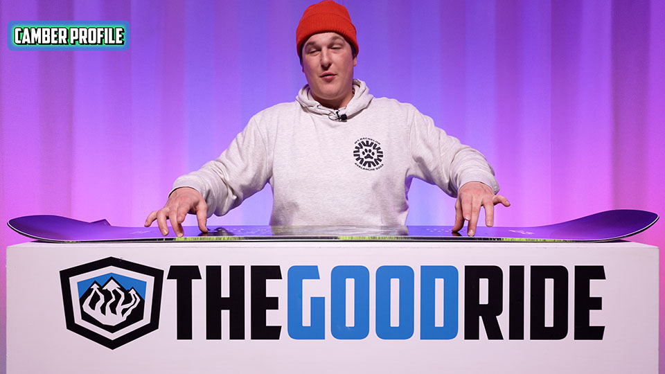 For the camber, we get a nice healthy bow of camber between the feet, and we got early riser rocker in the nose and in the tail.