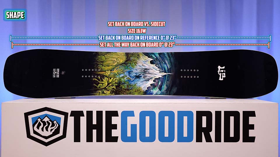 when it comes to the shape. We got a true twin. Ride it centered. No setback options. If you want a skunk ape that you can ride centered and sat back, Look at the Skunk Ape camber or the Skunk Ape rocker.
