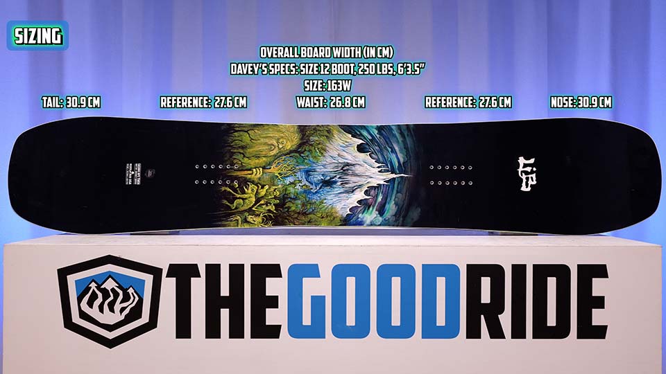 I’m 250 size 12 boot. Six, three and a half. The Skunk Ape Twin comes in a 163 wide and a 166 wide. The 163 has a nice swing weight if you’re someone who’s spinning and riding switch a lot and you’re getting this twin to be a twin, I recommend going for the 63 over the 66 just because of the swing weight and how it’ll be a little easier to pop around switch.