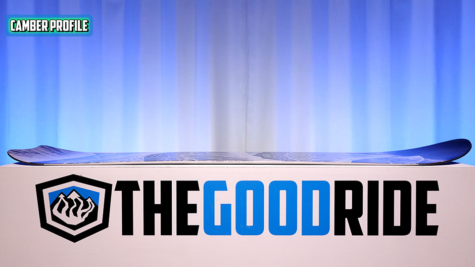 So let’s talk camber profile. There’s a very mellow camber profile, but it goes well past the inserts. And then it has a long smooth transition into a mellow early rise in the tail, and then a mellow transition up into a rocker in the nose.