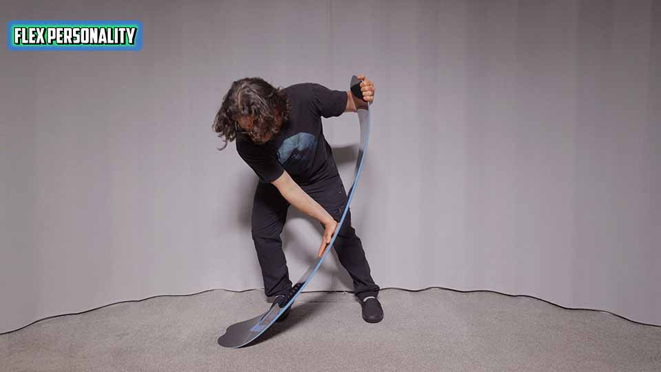 The Stranda Descender Evo has a medium stiff flex and it surprised me that it wasn’t as stiff as I thought it would be. Don’t get me wrong, it’s a stiff flex but it can flex further than most boards this stiff. It’s got a lot of energy without being ultra poppy. It has a nice flex in and a good pop out. The nose is pretty soft, the tail has give, and between the feet it’s stiffer.