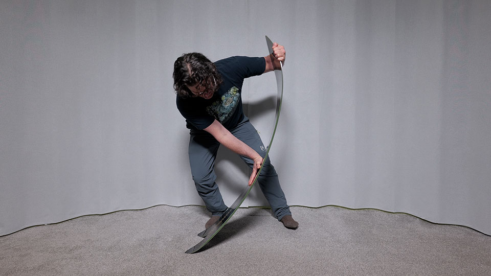 This little 152 Makril is pretty stiff between the feet but the nose has a lot more give. Then it gets a little stiffer, and when you look down in the tail, it’s very stiff. It really doesn’t want to give at all.
