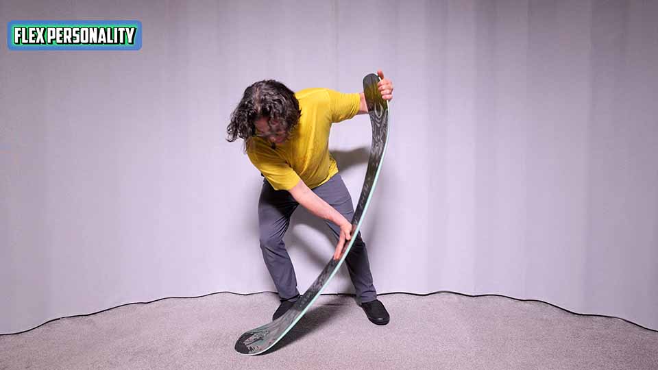 This YES Pick Your Line XTRM 159 is a lot stiffer than the past. YES tweaked their flex over their entire line to better match the flex rating that you see online. Now it’s much closer to the flex rating. You’ve got a very stiff tail, a little softer between the feet but not much, and then the nose is a little bit softer. Overall this is now for sure a medium stiff flex. Across the board it is much stiffer, but it’s still got a decent pop to it.